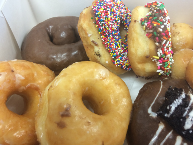 But they have all kinds of great options every morning for you to choose from including some original favorites like plain yeast glazed or chocolate-sprinkled as well as some more unique options like a gluten-free Strawberry Shortcake and Greek Yogurt frosted doughnuts with toppings like fruit, granola or cereal! Other crowd favorites include: Creme Brulee, Red Velvet, Salted Caramel, Maple Bacon, and the S’mores.