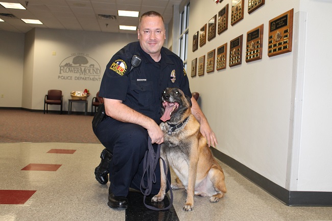 At nine years old, the Flower Mound K-9 dog is going to spend the rest of his days in retirement, comfortably ensconced in the family home of Officer Doug Kriese, who has worked with him as a partner since May 2011.