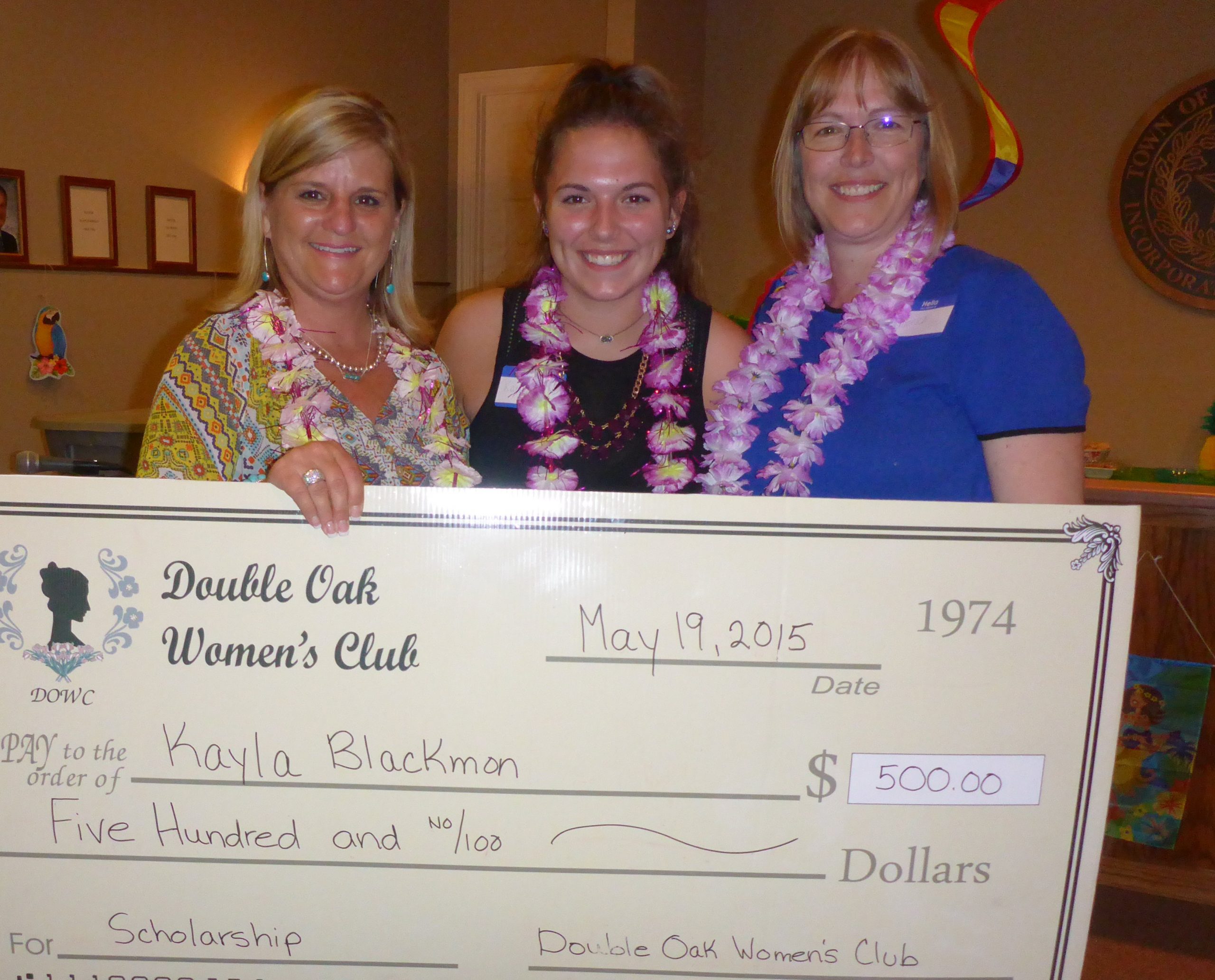 The Double Oak Women’s Club at their May meeting awarded a $500 Scholarship to Kayla Blackmon, a 2015 graduate from Marcus High School.