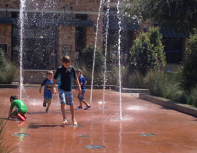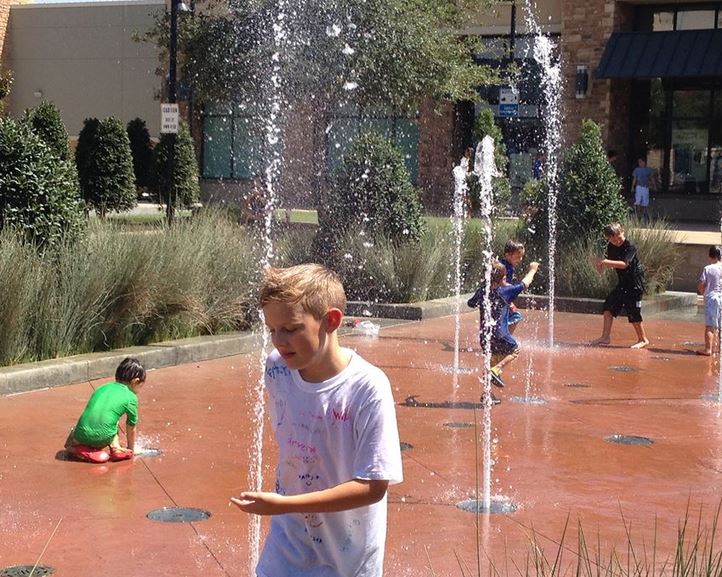 About 1/2 dozen kids hit the geysers at The Shops at Highland Village behind Barnes & Noble Booksellers.