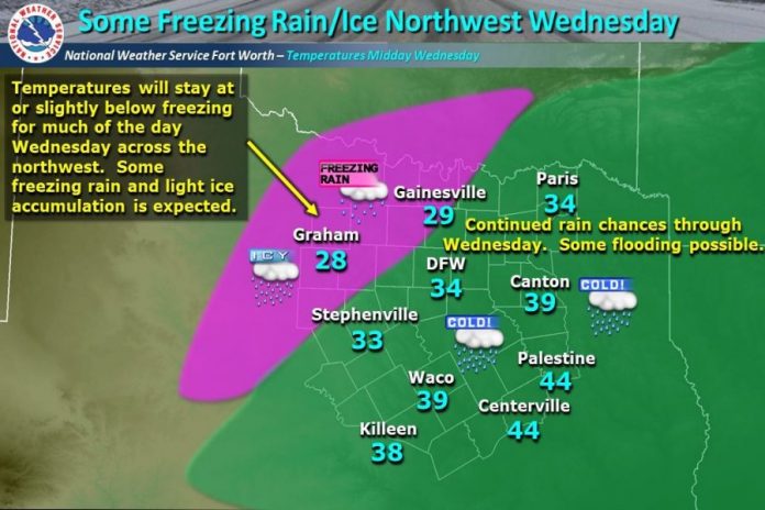 The weather service also issued a Winter Weather Advisory until 6 p.m. Wednesday for possible light freezing rain.