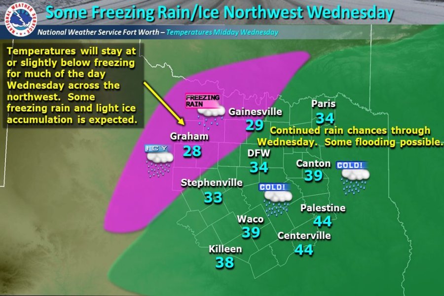 The rain began early Tuesday morning and poured for much of the day and night as a strong cold front moved through North Texas, bringing cold temperatures and very heavy rainfall. Rain is expected to continue through the day on Wednesday, according to the National Weather Service.