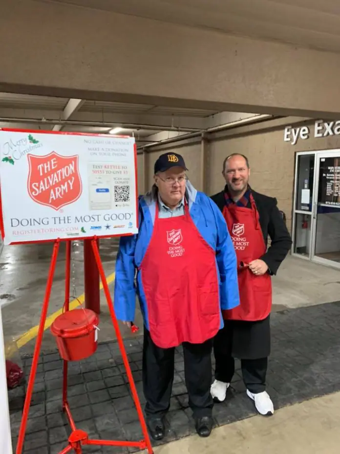 Lewisville Mayor Rudy Durham collects donations for the Salvation Army (photo courtesy of the city of Lewisville).
