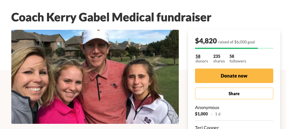 A GoFundMe online fundraiser and an online auction are currently raising money for Kerry Gabel, the head golf coach at Marcus High School.