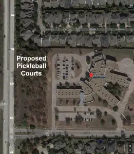 He is proposing building eight pickleball courts on a portion of 2.5 acres of undeveloped land FWSD #7 owns along FM 407 adjacent to E.P. Rayzor Elementary School and envisions partnering with the Lantana Community Association to oversee them.
