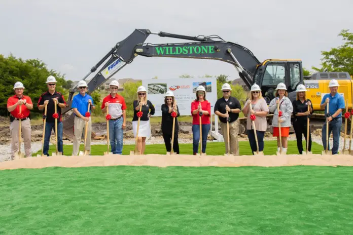 District officials and members of Pogue Construction and Corgan Architects participated in the ceremony to signify the start of construction, according to a district news release. The new school will be located on 16 acres at the corner of Denton Creek Boulevard and Prairie Ridge Road in Canyon Falls in the town of Flower Mound.