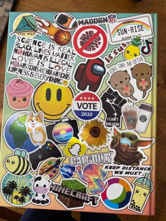 The Downing yearbooks were student-designed and approved by the principal, but the art teacher leading the class, Kayla Mick, was placed on administrative leave the last week of school after the political controversy arose. The front and back of the yearbook was covered with printed stickers illustrating things that happened during the school year and things the students liked. Most were innocuous, but on the back, there was one sticker with a black fist with the words “I Can’t Breathe,” and another one saying “Science is real, Black Lives Matter, no human is illegal, love is love, women’s rights are human rights, kindness is everything.”