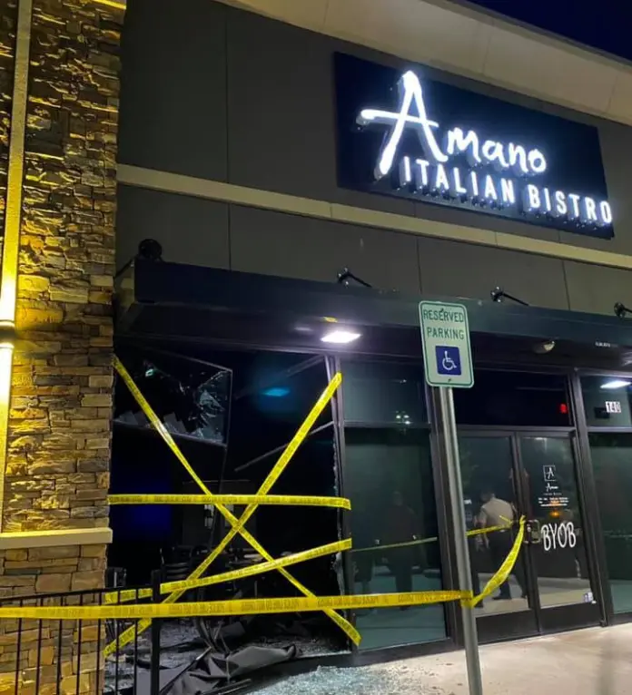 A tractor-trailer was headed west on Hwy 114, nearing the I-35W interchange, about 11:30 p.m. Saturday when two tires somehow came off of the cab on the driver’s side, according to Northlake Police Chief Robert Crawford. One of those tires flew at a high speed into the front window of Amano Italian Bistro, 5000 Hwy 114. Crawford said police don’t know how the tires came off, and they don’t know where the other tire went.