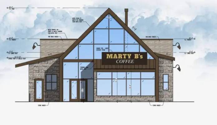 Bryan expects Marty B’s Coffee to open at 6 a.m. and close at 8 or 9 p.m. daily. The drive-thru will be built “so it can be amazing and fast,” Bryan said. “We want to do everything we can to deliver on that.”