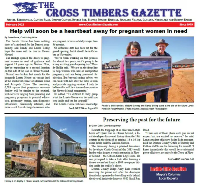 HomeThe Cross Timbers Gazette Latest Issues The Cross Timbers Gazette Latest Issues The Cross Timbers Gazette February 2022 By Max Miller January 31, 2022 0 2073 FacebookTwitterPinterestLinkedinWhatsAppReddItEmailPrint View the Cross Timbers Gazette full-screen. Share FacebookTwitterPinterestLinkedinWhatsAppReddItEmailPrint Previous articleWinter Storm Watch issued for Wednesday night through ThursdayNext articleSuffering from a pinched nerve? Let Advanced Pain Institute of Texas help Max MillerMax Miller is the publisher of The Cross Timbers Gazette. Related Articles Southern Denton County Local News Marcus High School football players accused of hazing teammate at team dinner in Double Oak Southern Denton County Local News High school football hazing case referred to Grand Jury by Double Oak PD Southern Denton County Life Valley Creek Church to build prayer center at Flower Mound campus Popular This Week Southern Denton County Local News Marcus High School football players accused of hazing teammate at team dinner in Double Oak Southern Denton County Local News High school football hazing case referred to Grand Jury by Double Oak PD Southern Denton County Life Valley Creek Church to build prayer center at Flower Mound campus Southern Denton County Life Argyle teen advances to national top 10 in Broadway singing competition Southern Denton County Schools Lewisville ISD names new principal for elementary school in Flower Mound