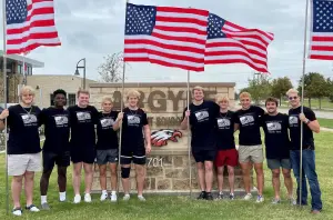 Argyle High School football team members helped set up flags for Veterans Day 2022.