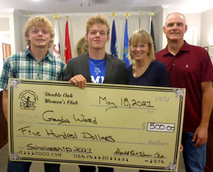 The club aims to give a $1,000 scholarship to a graduating senior who lives in Double Oak who will continue their education at a college, university, technical or trade institution. They do not need to have a parent who is a DOWC member.