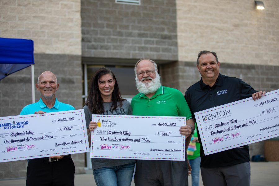 District-winning elementary and secondary teachers of the year are awarded a $1,000 check from James Wood AutoPark and a $500 check from the Denton Public Schools Foundation.