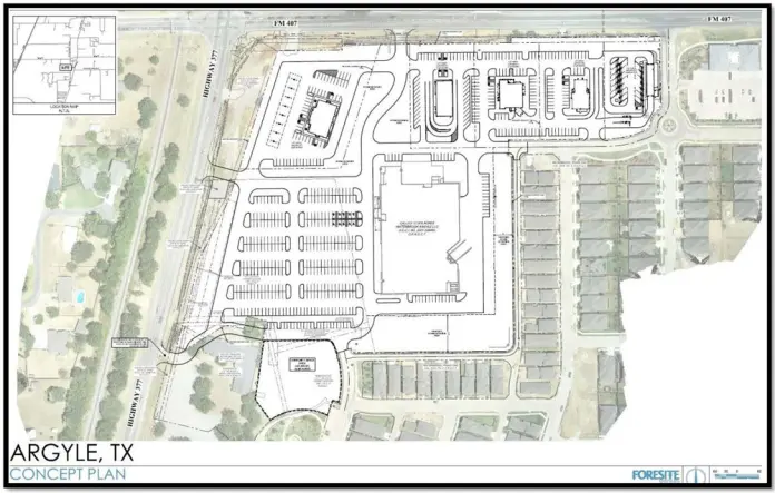 The original developer, Terra Manna, had said it planned to build a grocery store, restaurants and more after the 287 residential lots were built. But Terra Manna sold all of its real estate in Argyle about two years ago, and the new developer, Foresite Group, is now ready to present its development plans to the community.
