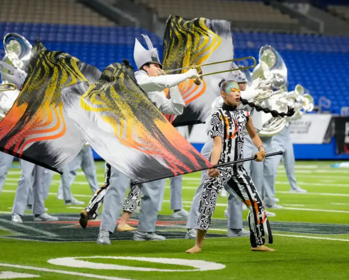 Marcus’ show, titled “Above the Noise,” and Flower Mound’s, titled “Deconstructed,” were both visibly gorgeous. Both schools’ talented and award-winning color guards provided the extra pop of colors while running around the field tossing rifles, sabers, and flags over their heads and/or spinning them in perfect synchronization.