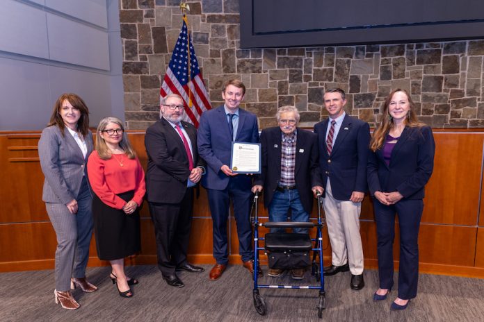“When I called him about this two weeks ago, he said he was refurbishing two computers,” said Si Simonson, who holds place 2 on the Veterans Liaison Board. “20 years in the Army and he spent the next 61 years giving back and I can’t think of a better person to name the Veterans Plaza after.”