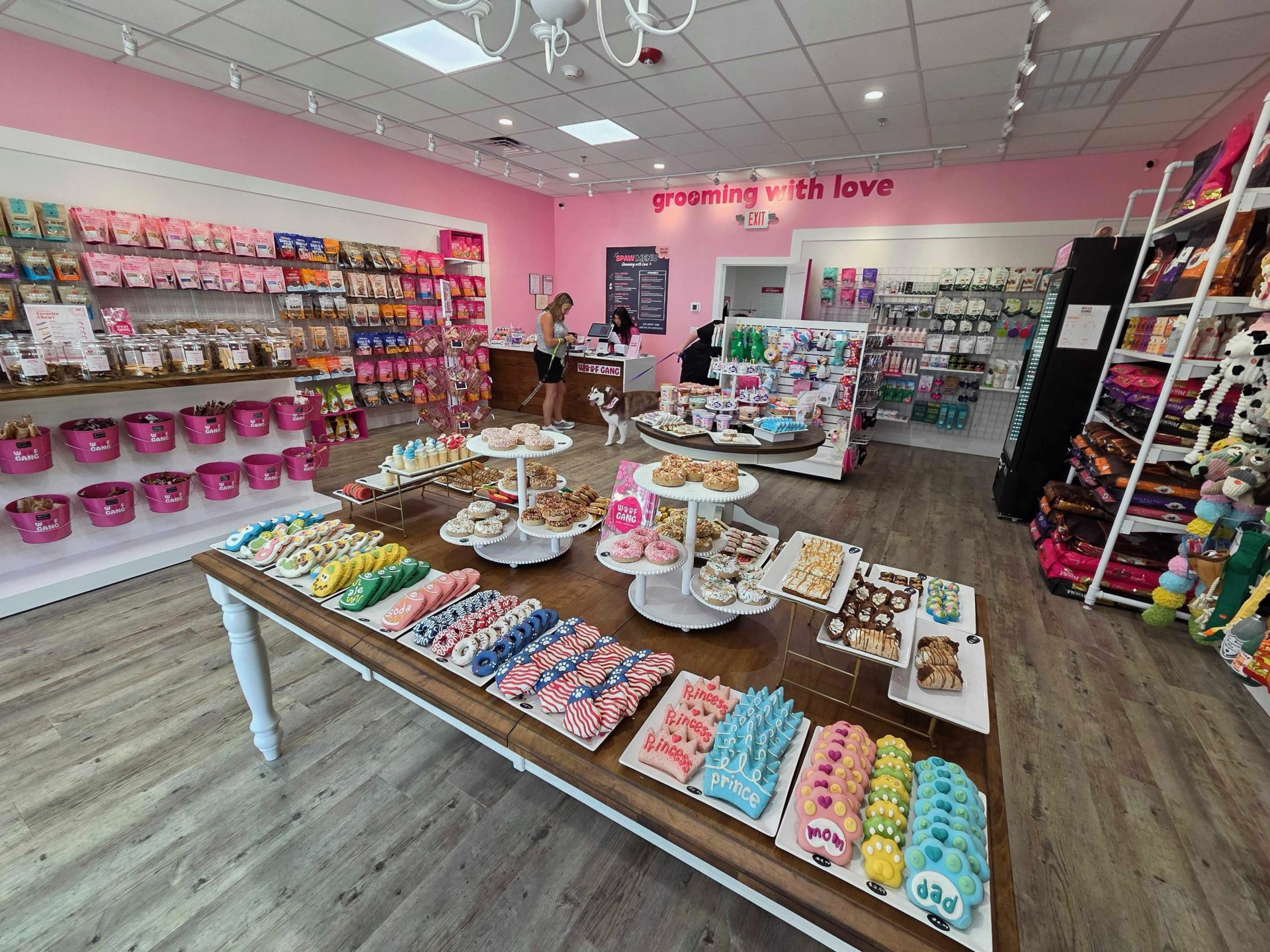 “Woof Gang Bakery & Grooming prides itself on creating a warm, loving and fun environment for pets and their owners,” said the store in a press release. “The store offers delicious handmade, oven-baked treats, a curated selection of high-quality food and supplies, and luxury grooming experiences designed to keep pets looking and feeling their best.”
