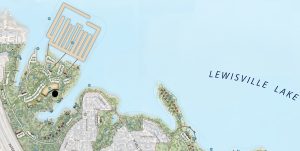 According to the City’s map of the Lewisville Lake Master Plan, the marina is the first phase of the major project. It will be developed to hold 800 boat slips and the rest of the area will include sports fields, disc golf, fishing piers and promenades, a driving range and expanded parking.