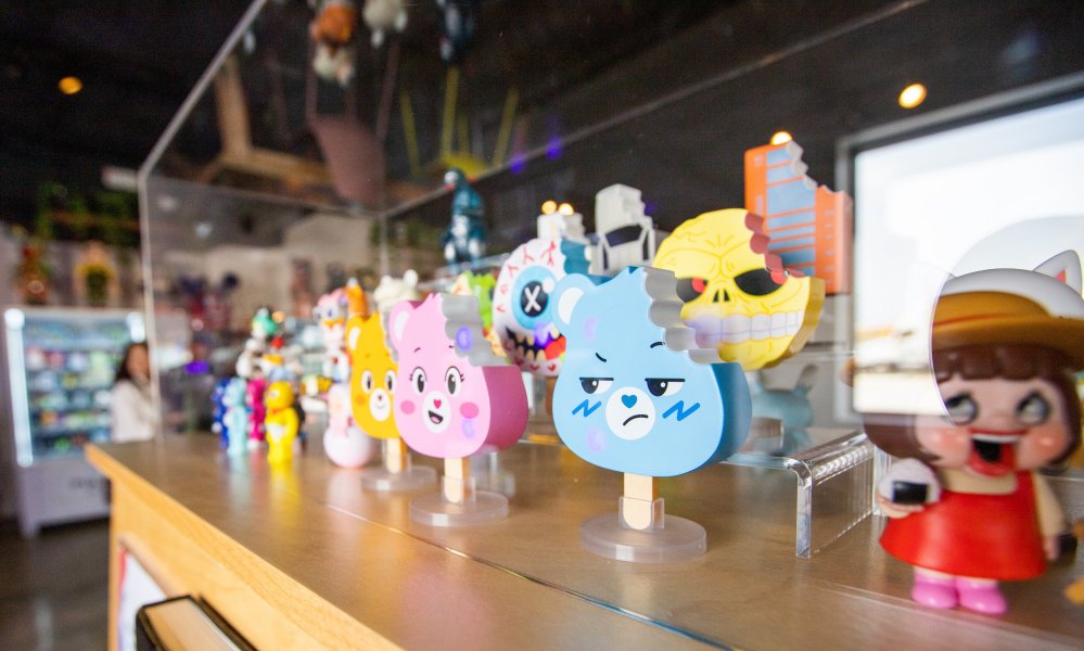 The store contains a curation of toys, figurines, posters and paintings from graphic artists like Dan Black, Greg Mike and Joe Ledbetter.