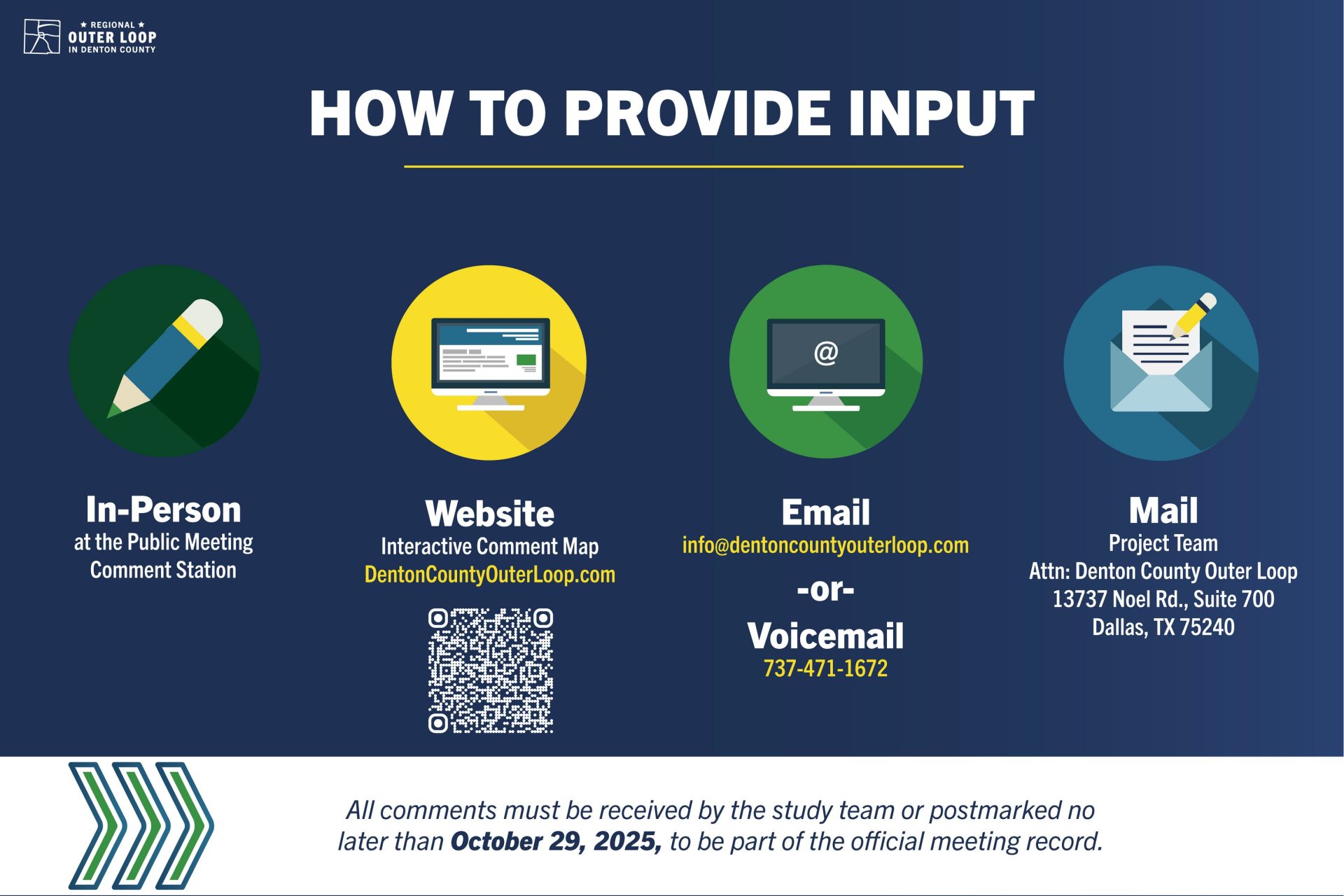 A public hearing is scheduled for spring 2026 and the Denton County Outer Loop team is interested in all residents’ opinions and ideas.
