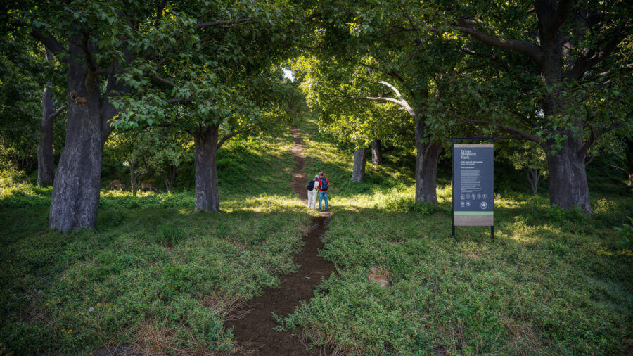 Pilot Knob is a 900-foot sandstone protrusion that is part of the Cross Timbers Forest and was known to be used as a lookout and directional landmark for the Native Caddo tribe, the Texas Rangers and early pioneers, as well as a hideout for outlaw Sam Bass.