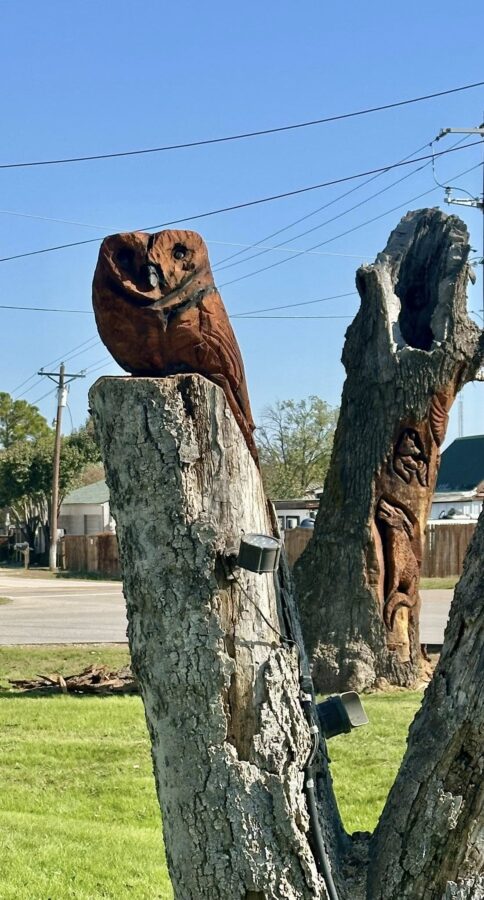 An Argyle tree that once stood tall at the corner of Hickory Hill Road and Hilltop Road was damaged by a storm in 2024, but the property owners had it converted into a work of art.