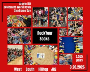 Burwell is accepting donations through her nonprofit, Tatum’s Tulips, to give students and staff at Argyle ISD’s elementary schools socks to wear on March 20 as a way to spread awareness about Down syndrome.