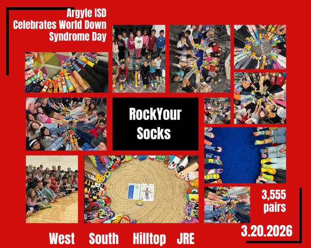 If Burwell had it her way, everyone in the world would get a free pair of socks to wear on World Down Syndrome Day, but for now, she’s aiming for 3,555 pairs, which is enough for the students and staff at every Argyle ISD elementary school.
