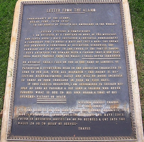 It contained a message about the defenders’ determination to “never surrender or retreat” in their fight for independence. The letter was carried by Captain Albert Martin to General Sam Houston.