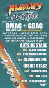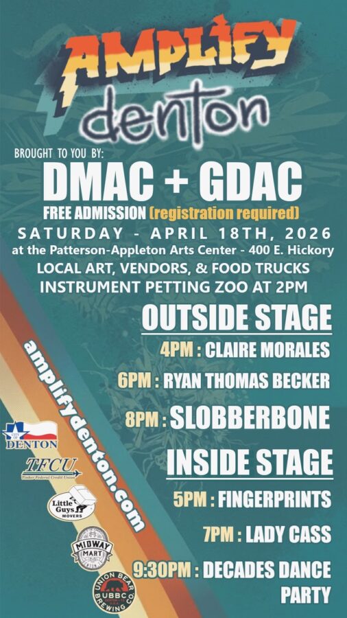 The Amplify Denton Music and Arts Festival will be free and hosted by the Denton Music and Arts Collaborative and the Greater Denton Arts Council as a way to raise funds for future public programming and DMAC’s healthcare subsidies that benefit local musicians and artists.